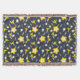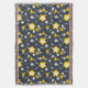 Retro flowers and leaves in white, grey, & ochre yellow over a midnight blue background. Background colour can be changed.