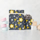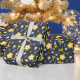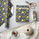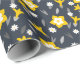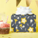 Retro flowers and leaves in white, grey, & ochre yellow over a midnight blue background. Background colour can be changed.