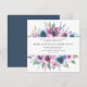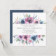Elegant floral wedding invitations displaying your wedding details framed by a top and bottom border of purple, mauve & blue watercolor flowers with lush green leaves. The back features a solid dark blue background. Designed to coordinate with our Midnight Blooms wedding collection.