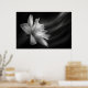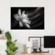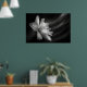 Enter a world of serene beauty with our exquisite AI-generated poster featuring a captivating flower captured in stunning black and white. This elegant photograph, taken from a low angle at night, embodies minimalist sophistication and modern grace.