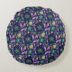 Transform your living space with the Midnight Blossom Round Pillow. This exquisite throw pillow features a captivating floral design in shades of green, pink, and gold against a deep navy background.