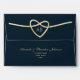 Immerse your guests in celestial romance with our enchanting 5x7 midnight blue wedding envelope. Crafted with mystical elegance, its modern design features a shimmering gold rope heart monogram, intertwining the initials of the bride and groom. Against the backdrop of a starry night, this invitation promises an unforgettable journey under the midnight sky. Complete with a celestial-themed return address, it sets the stage for a love story written in the stars.