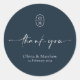 Chic and elegant with minimalist aesthetic. This lovely minimalist wedding thank you sticker features a contemporary set of fonts and wedding couple monogram against a dark midnight blue color background.