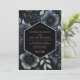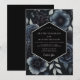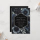 This design features a moody and dramatic aesthetic perfect for a formal winter or evening event. Deep midnight blue anemones are paired with dark botanical clusters and silvery leaves against a black backdrop. The noir-inspired palette creates a sense of luxury and mystery, highlighting detailed floral petals and organic textures.