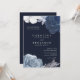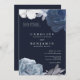Midnight Blue Floral Silver Leaf Romantic Wedding Invitation