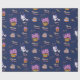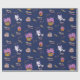 This magical Halloween wrapping paper features a dark midnight blue background with adorable illustrations, including a witchy white cat on a broom, spooky cupcakes, a pink octopus, and playful “Hocus Pocus” lettering. The whimsical design filled with stars and charming details makes it perfect for wrapping Halloween gifts and party favours with a fun, enchanting vibe.