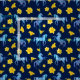 A colorful pretty pattern with blue horses on a dark navy vintage blue, surrounded by yellow Stella D'oro lily flowers. Great for ladies who love horses.