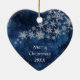 Midnight Blue Silver Snowflake Pitbull Dog Ceramic Ornament