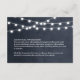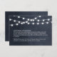 Chic modern summer wedding information insert card design with simple elegant glowing string lights hanging across the top and a classy mix of modern and calligraphy script fonts on a printed faux watercolor texture background. A simple and stylish preppy design, perfect for summer! Click the CUSTOMIZE IT button to customise fonts, move text around and create your own unique one-of-a-kind invitation design.