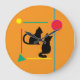 Midnight Cat & Crimson Moon Abstract Wall Clock