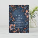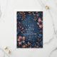 An enchanting deep-navy wedding design wrapped in glowing copper florals and delicate botanical detailing. This immersive, moody palette creates a romantic twilight atmosphere, perfect for elegant evening weddings or couples who love rich, dramatic aesthetics. The ornate frame draws the eye to your names and details, giving the entire piece a luxurious, storybook feel. A sophisticated choice for modern romantics who want their celebration to feel timeless and striking.