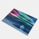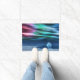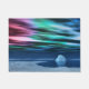 In the bay of a frozen land a great iceberg floats in the cold blue sea. Snowflakes and stars speckle the scene, and in the sky overhead the aurora glows in shades of pink, lavender, green, and blue.