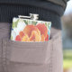 The flask itself is fine. It’s a cheap flask, obviously bought in bulk, however am prepared to overlook that. Given that it is a personalized item, I would have liked to have seen gift boxing instead of the generic packaging. Terrible printing, and/or quality. It’s a cheap, tacky vinyl. It is not cut straight and is also applied in a way that it is overhanging the bottom, causing the glue to catch on items and it will eventually roll and tear, damaging the wrap.