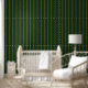 Dark green wallpaper with vertical yellow pinstripes pattern.