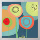 a garden at night with bright pop flowers in aqua, yellow and orange. Modern, retro and great for residential and commercial spaces.