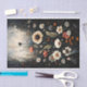 Decoupage Boutique - Midnight Garden Wildflowers Decoupage Tissue Paper: Dramatic wildflower design featuring cream and coral blooms on deep charcoal background.