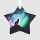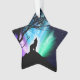 The Aurora Borealis. A wolf howling in the silence of the night. The scene is both dramatic and beautiful making it a magical piece of artwork.