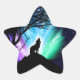 The Aurora Borealis. A wolf howling in the silence of the night. The scene is both dramatic and beautiful making it a magical piece of artwork.