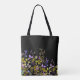 This lovely bohemian inspired "Midnight Mauve" tote bag is embellished with a beautiful garden of painted flowers and leaves. Vibrant lilac, purple and mauve flowers in a garden of muted green and olive foliage. Customisable in your choice of background colour, size and style options. Unique, functional and very stylish.