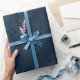 Midnight Navy Romance | Blue Satiny Grunge Damask Wrapping Paper