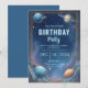 Prepare for a celebration that is truly out of this world with this cinematic cosmic border. The layout features a deep indigo and violet nebula shimmering with sparkling stardust, while four distinct watercolor planet motifs—including a majestic ringed giant—grace the corners. At the base, the celestial bodies are nestled in wispy blue clouds, all encapsulated within a sophisticated triple gold frame that adds a touch of high-end luxury to the infinite reach of space. This layout serves as the perfect foundation for a premium outer space style birthday invitation. Whether you are planning a milestone first trip around the sun or a sophisticated galactic gala, this starry detail ensures your announcement arrives with a signature of curated wonder and adventurous spirit.