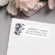 Elegant vintage floral return address labels features modern midnight blue lettering with a vintage style orchid illustration along the left side. Designed to coordinate with our Midnight Orchid wedding invitation collection.