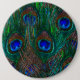 Midnight Peacock Feathers Etching Style Decor 6 Cm Round Badge