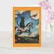 Celebrate Halloween with a dash of mystery and magic. This unique greeting card features a bold black cat confidently riding a fantastical, wingless collage-coloured horse through a surreal twilight sky. Perfect for those who love imaginative, Afrocentric, and dreamlike visuals, this card blends seasonal spirit with artistic flair. Send it to someone who appreciates the unexpected and the extraordinary.