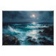 This digital masterpiece is meticulously crafted in a rich Oil Painting style, blending the timeless feel of classical fine art with a sleek, modern touch. The painting captures a majestic ocean scene under the glow of a full moon, where textured brushstrokes and deep emerald tones converge to create an extraordinary sense of visual depth and mystery.