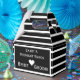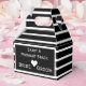 Perfectly classic black and white seersucker striped wedding favour box that is customisable with the bride and grooms name and is ready for a Midnight Snack