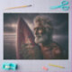 Unused bedroom fireplace inspired by Leonardo David is red chalk drawings. Absolutely so proud and the overall result total success Magical at night so warm and comforting. Slight differences in depth of colour between sheets but perfectly acceptable as it is bespoke printing.Thrilled.