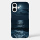 Calm navy-blue ocean waves glowing under soft moonlight. A serene phone case for ocean dreamers.