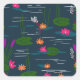Midnight Whimsical Lotus Floral Garden Square Sticker