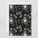 This stunning wedding invitation features a scattered bouquet of beautiful, delicate wildflowers in light sage green, taupe, and purple, with faux gold geometric accents and calligraphy on a dramatic, black background. An elegant and moody design with a coordinating pattern filling the back of the card.