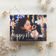 Missed the deadline for Christmas cards? Share New Year's wishes instead with this simple and elegant photo card. Design features your favourite full bleed horizontal / landscape orientated photo with "Happy New Year" in handwritten style casual white script typography. Personalise with your custom greeting and the year at the bottom. Cards reverse to a festive black and white confetti pattern.