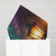 This spellbinding artwork captures a gothic witch beneath the glowing moonlight of a Venetian canal. Her raven-black hair flows beneath an ornate hat crowned with golden detail, while her corseted gown exudes dark elegance. Lanterns flicker against dreamy purple skies, casting an enchanting glow over the water and the crescent moon above.