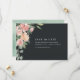Our Midsummer Floral save the date card features your key wedding details (names, wedding date, location and website) accented by pastel watercolor flowers and foliage in soft shades of blush pink, peach, ivory and sage green, against a rich charcoal off-black background. A modern and elegant save the date design that's a chic minimalist take on the watercolor floral trend.