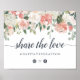 Designed to match our Midsummer wedding collection, this elegant floral sign lets guests know about your custom wedding hashtag for social media sharing. Personalise the header and hashtag (shown with "Share the Love"), with a top border of pastel watercolor flowers and foliage in peach, ivory, blush pink and sage green. Includes two social media icons joined by a heart.