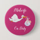Midwife On Duty stork with baby design Small, 3 Inch Round Button.