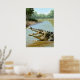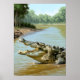 A striking illustration of a powerful crocodile resting in the river with its jaws open wide, surrounded by lush greenery and calm waters. Perfect for wildlife lovers, adventure seekers, and animal art enthusiasts.