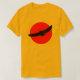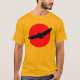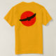 A black, soaring condor in front of an orange sun on a yellow t-shirt.