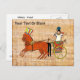 Jewish boy makes good. A slightly humourous take on the Torah portion Miketz. Features a painting on papyrus of Yosef (Joseph), looking a bit perplexed, as he rides in the chariot assigned to him by Pharaoh. And no wonder he is a bit overwhelmed. Yosef has had a few ups and downs. His brothers hated him because of his dreams; even his father, Ya'akov, was a bit disturbed by them. His brothers sell him to passing Arabs, who sell him to Egyptians. Yosef, now a slave, ends up in a dungeon for something he did not do. One morning, some years later, he is summoned by Pharaoh who puts him in charge of all Egypt. Add your own text.