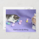 A customisable card with Mikie playing with coloured eggs and Bubba watching. I left Bubba there, though he is not focused perfectly, to show how he was sitting by patiently watching me take pictures of Mikie. See his little paws together and his calm demeanour. He is so funny. Mikie was slapping eggs all over the place. Later on I will put some catnip in them. You can customise.