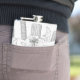 The flask itself is fine. It’s a cheap flask, obviously bought in bulk, however am prepared to overlook that. Given that it is a personalized item, I would have liked to have seen gift boxing instead of the generic packaging. Terrible printing, and/or quality. It’s a cheap, tacky vinyl. It is not cut straight and is also applied in a way that it is overhanging the bottom, causing the glue to catch on items and it will eventually roll and tear, damaging the wrap.