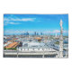 Painting of Milan skyline with modern skyscrapers in Porto Nuovo financial district and stone statues of Duomo Cathedral