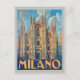 Step back in time with this vintage travel postcard celebrating the allure of Milan, Italy. The iconic Milan Cathedral (Duomo di Milano) stands tall, its intricate Gothic architecture juxtaposed against the city’s contemporary vibe. Capture the essence of Milan’s rich history and cosmopolitan flair.