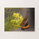 This custom puzzle features a colourful photograph of an orange, black and white Milbert's Tortoiseshell butterfly with glistening body hair sitting on a cluster of yellow flowers. Click Customise it! to add text in a font style, size and colour you prefer. You can also select this work on an 8" x 10" puzzle that comes in a tin. Photo ©Patricia AZ Phillips