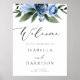 This wedding welcome sign features dusty blue watercolor florals and an elegant script font. This welcome poster makes the perfect addition to your romantic winter or spring occasion.