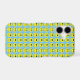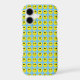 Classic smile emoticons with red hearts on blue highlight this fun iPhone case.