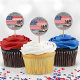 This "When Duty Calls The Brave Answer" US Military US flag combat boots Going Away / Farewell Party cupcake picks and favour round stickers, with a grey background, are a personalised and memorable way to celebrate your brave Airman (Air Force), Guardian (Space Force), Soldier (Army), Marine (Marines), Sailor (Navy), or Coast Guardsman (Coast Guard) who is heading to Basic Training (BMT or BCT), Boot Camp, deployment, or overseas duty base. Perfect for any branch of service! ** Designed by a proud Air Force Mum ** Scroll below to check out the full matching collection for your perfect going away party including invitations (available for instant digital download for those in a rush or Zazzle print & ship + envelopes), welcome signs, party banners, lawn directional signs, wall art sign-able guest book, table decorations, and more! Click the blue “by FigLilyCo--military” link in the upper right hand corner of this screen to visit my Zazzle storefront and check out my collection of designs for going away parties, basic training, graduation ceremonies, and active duty! *Custom design requests are always welcome - click the "message" button, or email direct (with quick response time!): contact@figandlilyco.com. From this proud military family to you and yours - we send our sincere blessings, and HUGE thanks for the service, courage, and sacrifice of your soon-to-be US Service Member ♥